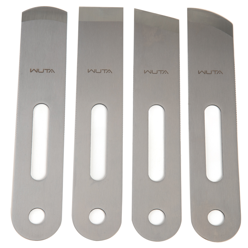 پک ۴ عددی گزن ووتا شامل چهار نوع تیغه حرفه‌ای از جنس فولاد ضدزنگ 420B با کیفیت مارتنزیتی است که هر کدام برای کاربردهای خاص در چرمدوزی طراحی شده‌اند. این تیغه‌ها با عملیات حرارتی ویژه، تیز و مقاوم شده‌اند تا بهترین عملکرد را در نازک‌کاری و برش چرم ارائه دهند.